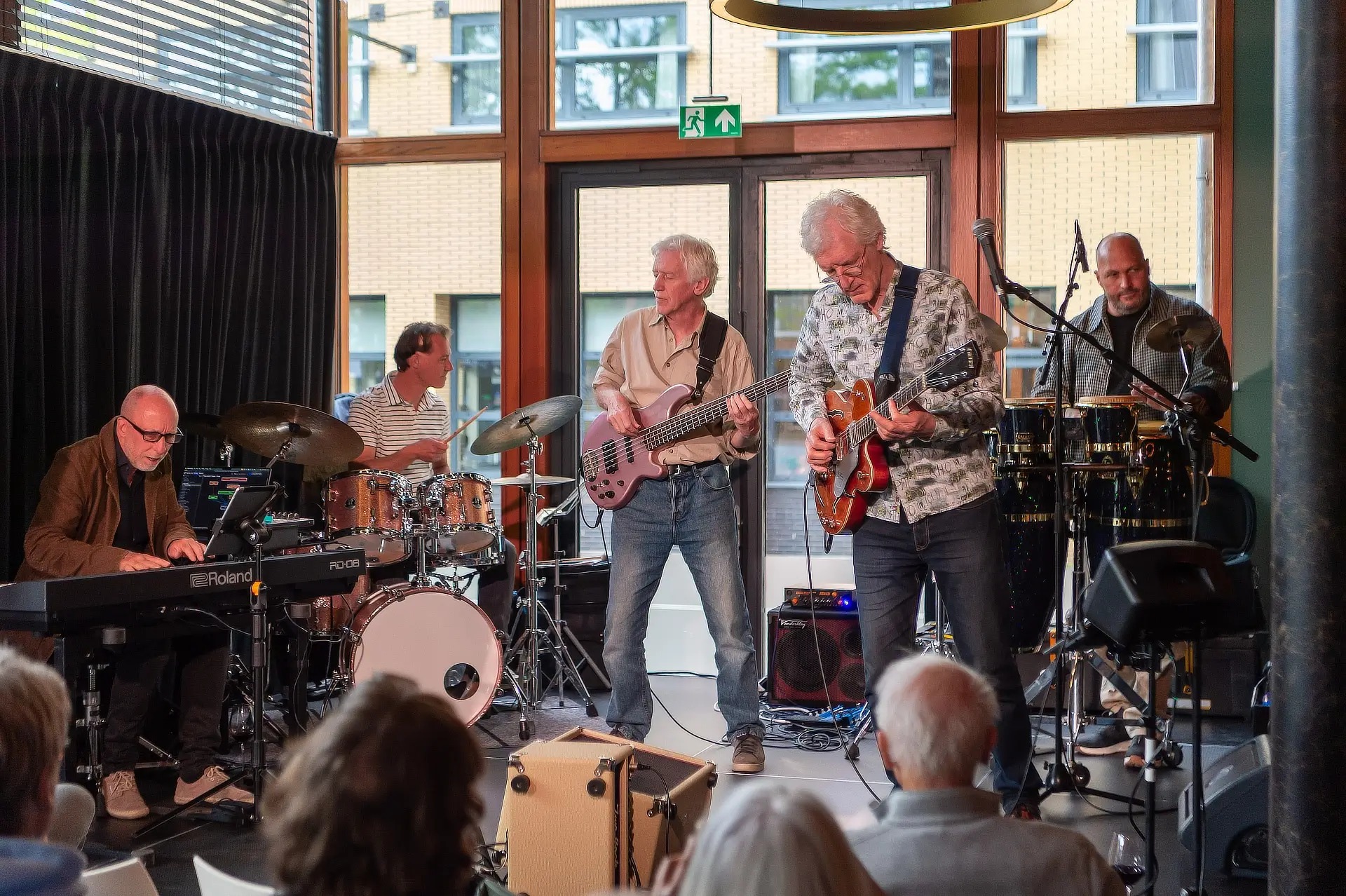 Ieder bandlid krijgt zijn moment om te ‘shinen’ en we worden getrakteerd op melodieuze piano- en bassolo’s van Karel en Theo. De solo’s en breaks van Martin en Jasper laten je voeten meetikken of je wilt of niet: de energie spat er vanaf!